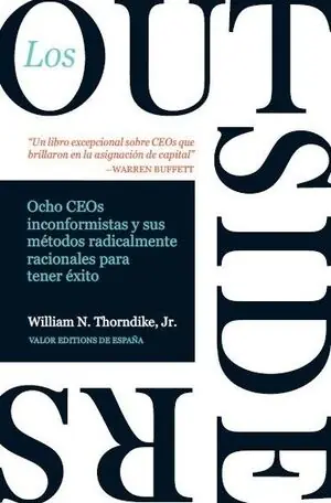 ¿Qué es un CEO de éxito? A la mayoría de gente le viene a la mente una definición familiar: un dirigente experimentado con una gran experiencia en el sector. Otros señalarán las cualidades de los denominados CEOs famosos de hoy: carisma, habilidades de comunicación talentosas y un estilo de dirección seguro de sí mismo. Pero ¿qué importa realmente cuando se dirige una organización? ¿Cuál es el sello distintivo del excepcional desempeño de un CEO? Muy sencillo, son los retornos a largo plazo para los accionistas de esa empresa.En este libro innovador y contraintuitivo, el autor William Thorndike hace uso de la sabiduría analítica de una exitosa carrera en la inversión evaluando detenidamente el desempeño de empresas y de sus líderes. Conocerá a ocho CEOs individualistas cuyos retornos promedio de sus empresas superaron al S&P por un múltiplo de veinte, en otras palabras, una inversión de 10.000 dólares con cada uno de estos CEOs, de promedio, habrían valido más de 1,5 millones de dólares veinticinco años después. Puede que no conozca todos sus nombres, pero reconocerá sus empresas: General Cinema, Ralston Purina, The Washington Post Company, Berkshire Hathaway, General Dynamics, Capital Cities Broadcasting, TCI y Teledyne. En Los outsiders conocerá sus cualidades y sus métodos -llama la atención su consistencia e implacable racionalidad- que ayudaron a estos líderes únicos a conseguir un rendimiento excepcional de este tipo. Humildes, sencillos y a menudo frugales, estos outsiders rehuían Wall Street y la prensa y se mantenía alejados de las tendencias más de moda de la nueva dirección. En cambio, compartían cualidades específicas que les pusieron a ellos y a las empresas que lideraban en trayectorias ganadoras: una fijación por centrarse en el valor por acción en lugar de los beneficios o el crecimiento de las ventas; un talento excepcional para la asignación de capital y los recursos humanos y la creencia de que el flujo de caja, no los beneficios reportados, determina el valor a largo plazo de la empresa.Haciendo uso de años de investigación y experiencia, Thorndike relata historias reveladoras, extrayendo lecciones y mostrando un modelo alternativo cautivador para todo aquel que esté interesado en liderar una empresa o invertir en una y cosechar retornos extraordinarios. «,